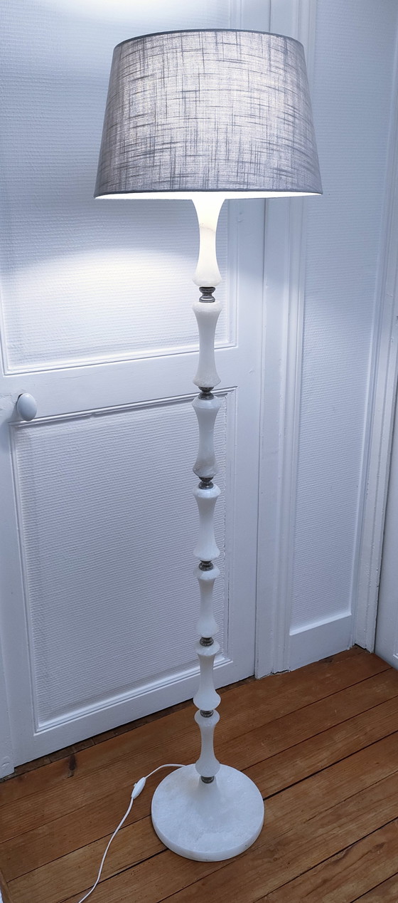 Stehlampe aus massivem Alabaster und Zierteilen aus Metall.