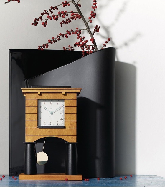Die Mantelclock ging 1988 in Produktion und blieb bis 1999 im Sortiment von Alessi.