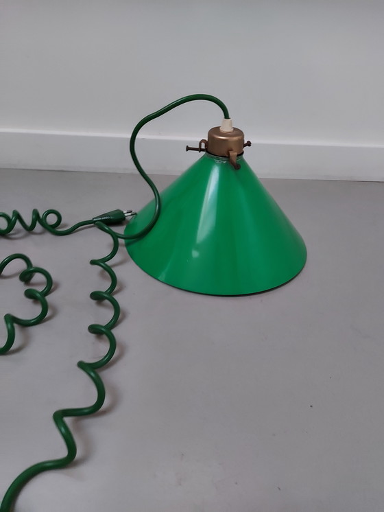 Schöne alte Schusterlampe von David Lampe Dänemark aus den 1960er Jahren. In der ursprünglichen grünen Farbe. Durchmesser der Lampe: 26 cm. Höhe: 19 cm.