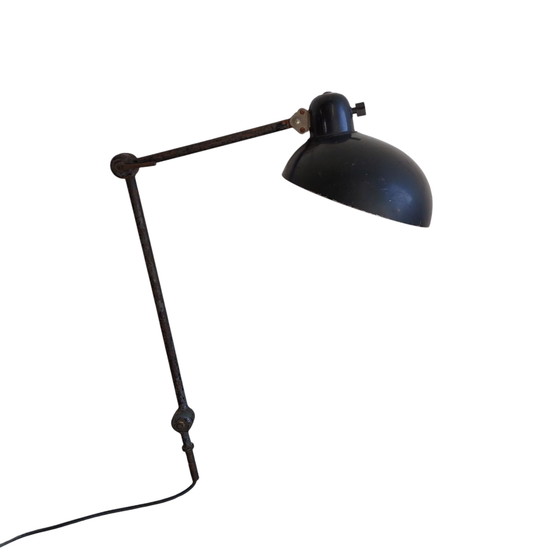Diese industrielle Vintage-Werkstattlampe von Helo Leuchten ist ein authentisches Stück, das jedem Raum Charakter verleiht. Aus Metall gefertigt, strahlt sie einen robusten und funktionalen Look aus. Mit dem verstellbaren Arm können Sie das Licht nach Belieben einstellen, ideal für Arbeitsplätze oder als Stimmungslicht. Die Lampe hat einen robusten Used-Look mit einigen Gebrauchsspuren. Maximale Höhe 103 cm, Durchmesser des Schirms 22,5 cm.