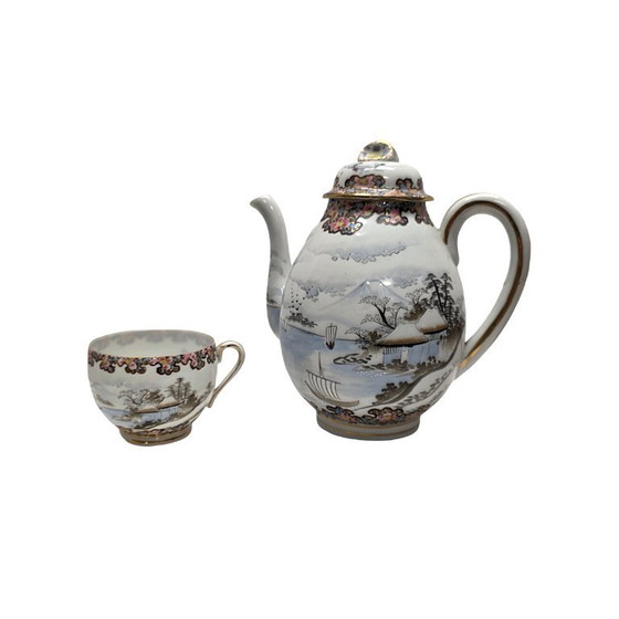 Alte japanische Porzellan-Teekanne und -Tasse, frühes 20. Jahrhundert