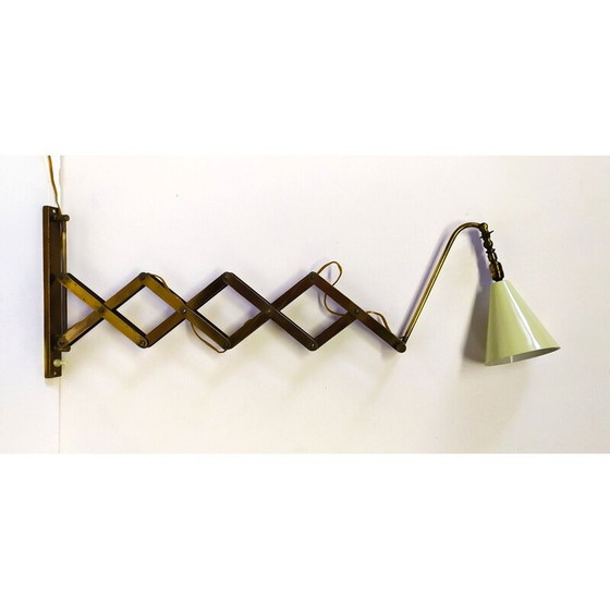 Italienische Scherenwandlampe aus Messing, 1940er Jahre.