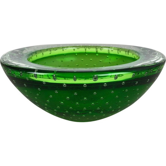 Alter Aschenbecher aus grünem Bullicante-Glas aus Murano, Italien 1970