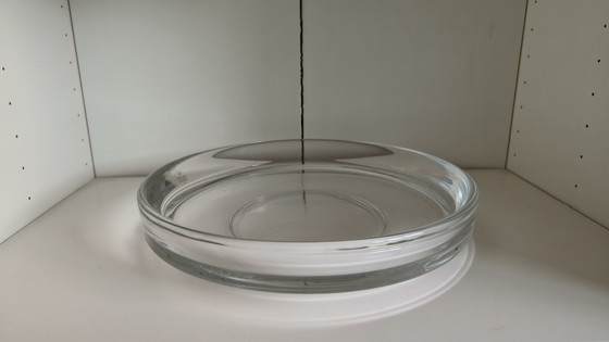 Diese Vintage Holmegaard Schale Apollo aus Klarglas wurde von Torben Jorgensen in den 1990er Jahren entworfen. Elegante und moderne Schale. Merkmale Fabrik Aufkleber.