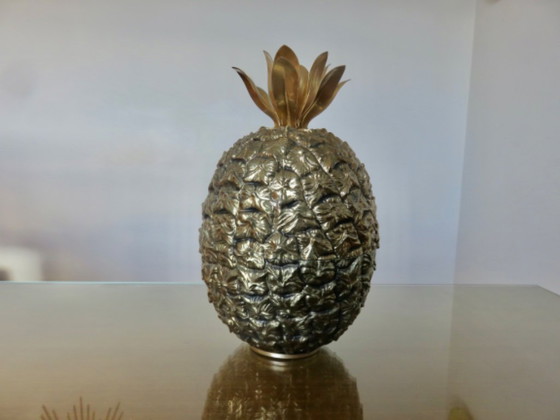 Goldfarbener Eisbehälter in Ananasform aus Metall, 1970. Am Boden gestempelt: Michel Dartois Paris Made in France. Höhe 30 cm, Durchmesser 17 cm. Nur sehr wenige Exemplare befinden sich in diesem außergewöhnlichen Zustand.