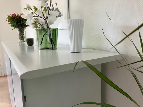 Anrichte Pastoe Vision, entworfen von Pierre Mazairac und Karel Boonzaaijer. Dieses besondere Modell mit seinen klaren Linien, grifflosen Türen und seinem minimalistischen Design ist ein Klassiker des niederländischen Designs der 1980er Jahre. Einige Schäden hier und da.