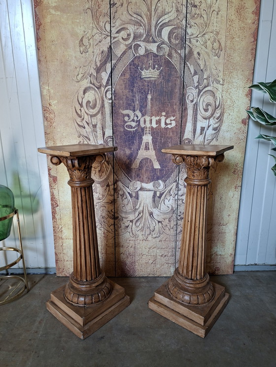 Diese wunderschönen antiken Holzsockel sind eine stilvolle Bereicherung für jedes Interieur. Mit ihrem klassischen Look und der detailreichen Verarbeitung verleihen sie Ihren Räumen einen Hauch von Eleganz und Geschichte. Ob als Sockel oder Pflanzenständer – diese Sockel vereinen Vielseitigkeit und Stil.