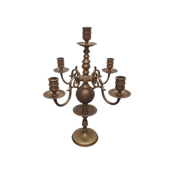 Antiker 5-Arm-Kerzenleuchter aus Messing, 1970er/80er Jahre