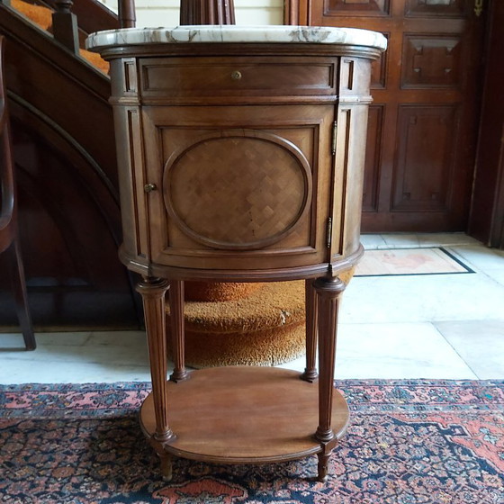 Antiker französischer Beistelltisch oder Nachttisch mit Intarsienarbeit, Frankreich
