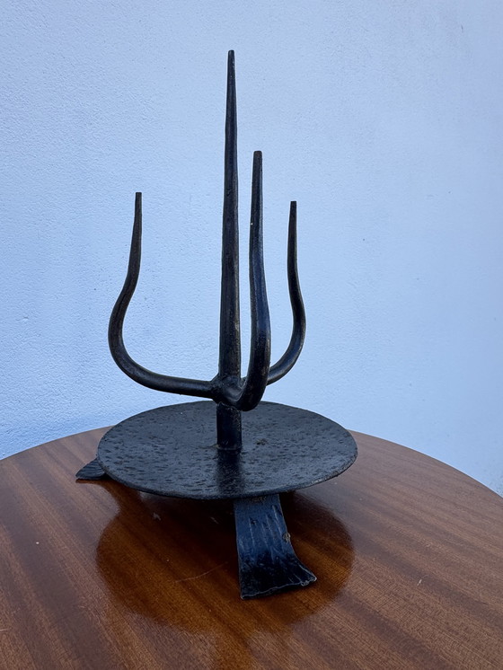 Antiker Kerzenständer aus Schmiedeeisen im brutalistischen Stil