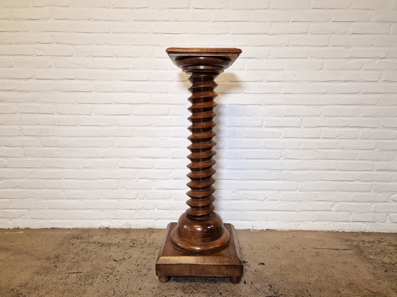 Schöne gedrechselte hölzerne Weinpresse, die Anfang des letzten Jahrhunderts zu einem Pflanzenständer umfunktioniert wurde. Sehr schön dekorativ als Säule oder Ständer für eine Zimmerpflanze. Guter Zustand für sein Alter. Stammt aus Südfrankreich. Höhe: 100 cm.