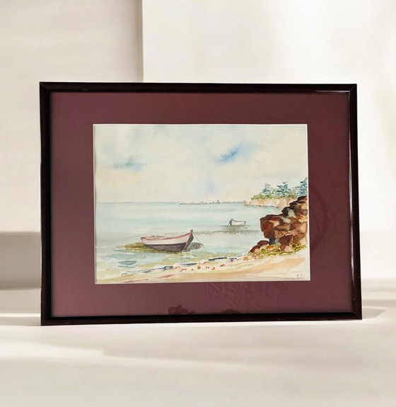 Aquarellgemälde des Golfs von Morbihan, Frankreich, 1989