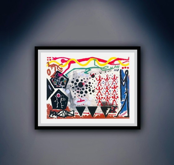 A.R. Penck: "Ereignis in NY II, 1983". Offsetlithographie in ausgezeichnetem Zustand.