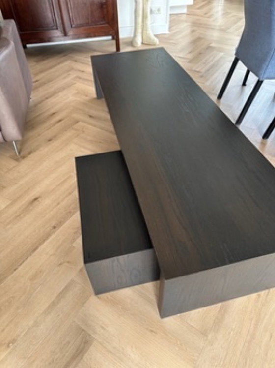 Entdecken Sie das stilvolle Couchtisch-Set Arco Deja Vú – die perfekte Ergänzung für Ihr modernes Interieur. Das Set besteht aus einem eleganten Holztisch mit schlankem Design und einem passenden Ledersitzkissen für zusätzlichen Komfort und Stil.