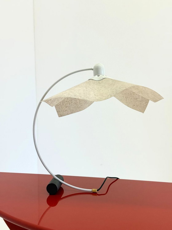Die Tischleuchte Area Curvea, in den 1970er-Jahren von Mario Bellini für Artemide entworfen, ist ein elegantes und ausdrucksstarkes Beispiel italienischen Designs jener Zeit.