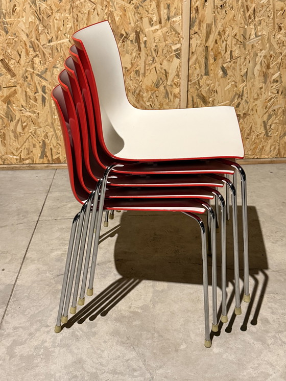 ZustandGutFarbenWeiß, RotMaterialChrom, KunststoffAnzahl der Artikel5MarkeArperHöhe80 cmBreite45 cmTiefe52 cmSitzhöhe45 cmGebrauchsspurenKratzer
