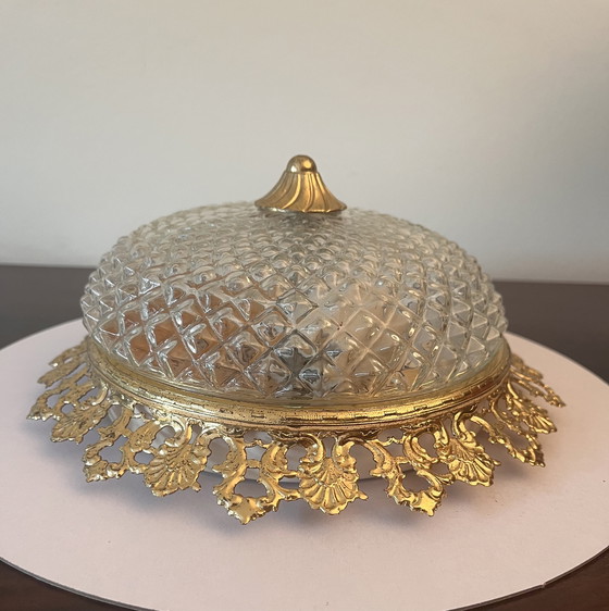 ZustandSehr gutFarbenGold, TransparentMaterialMetall, GlasAnzahl der Artikel1Höhe10 cmBreite23 cmTiefe23 cmGebrauchsspurenKratzer
