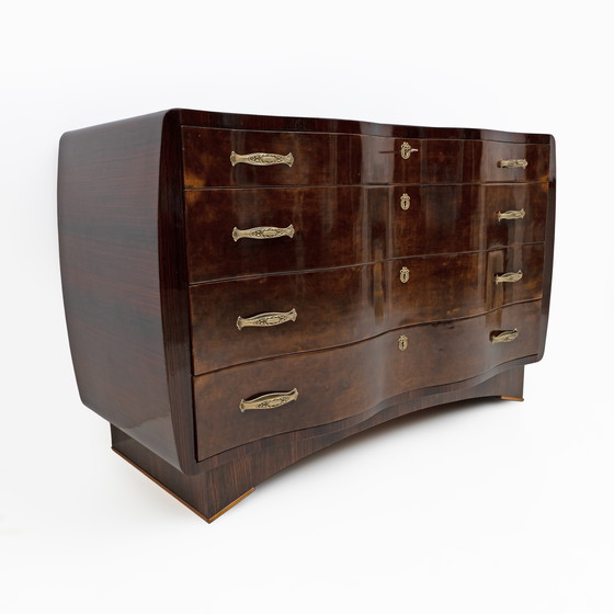 Art Deco Italienische Thujawurzel geschwungene Kommode, 1930er Jahre