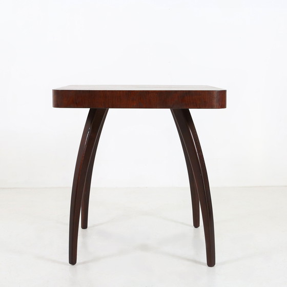 Tschechische Republik / 1930 / Spinnentisch / Modell H259 / Jindrich Halabala / Spojené UP Zavody / Holz / Art Deco / Mid Century / Vintage Dieser Art Deco Couchtisch, bekannt als "Spinnentisch" (Modell H259), wurde von Jindrich Halabala entworfen und 1930 von Spojené UP Zavody hergestellt. Das Tischmodell "Spider" zeichnet sich durch bemerkenswert geschwungene, sich verjüngende Beine aus, die ihm ein insgesamt verspieltes Aussehen verleihen. Die quadratische Holztischplatte ist mit abgerundeten Ecken ausgeführt. Jindrich Halabala (1903 - 1978) war einer der berühmtesten tschechischen Möbeldesigner des 20. Jahrhunderts und seine Entwürfe sind heute sehr gefragt. Seine Entwürfe befinden sich in den ständigen Sammlungen von Institutionen wie dem Kunstmuseum Olomouc und dem Stedelijk Museum in Amsterdam.