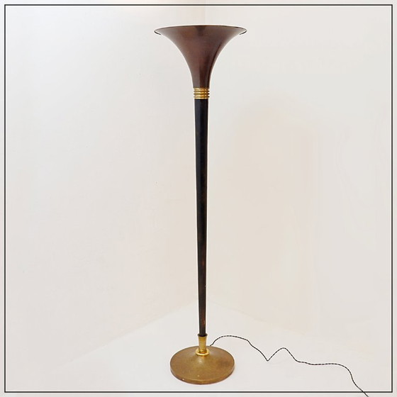 Art-Deco-Stehlampe aus bronziertem Metall und Messing im Stil von Pietro Chiesa, 1940er Jahre