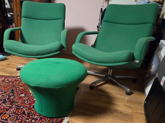 Zu verkaufen: 2x ARTIFORT Design Geoffrey D. Harcourt RDI Sessel mit passendem Original-Hocker (1x) in frischem Grün.