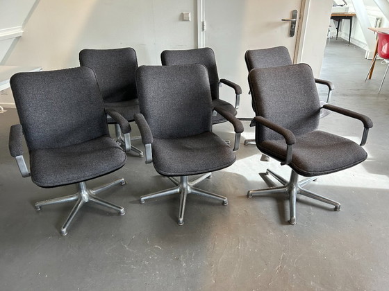 Komplettes Set identischer Artifort-Stühle im Industrial-Look. Eine gelungene Kombination aus niederländischem Design und Komfort – ideal für Besprechungsräume, Esszimmer, Büros oder Gastronomiebetriebe. Verkauf paarweise, insgesamt 6 Stühle verfügbar.