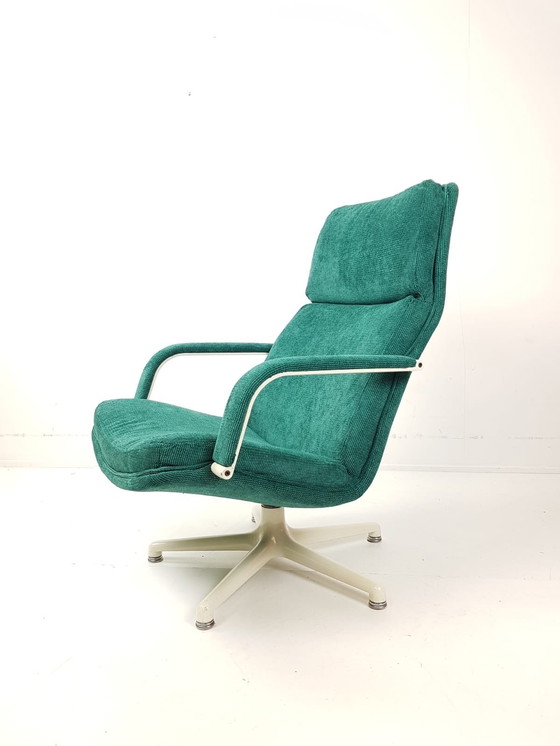Wunderschöner Artifort-Drehsessel mit neuem grünen Bezug. Der Sessel ist in exzellentem Zustand (wie neu) und bietet hohen Sitzkomfort.