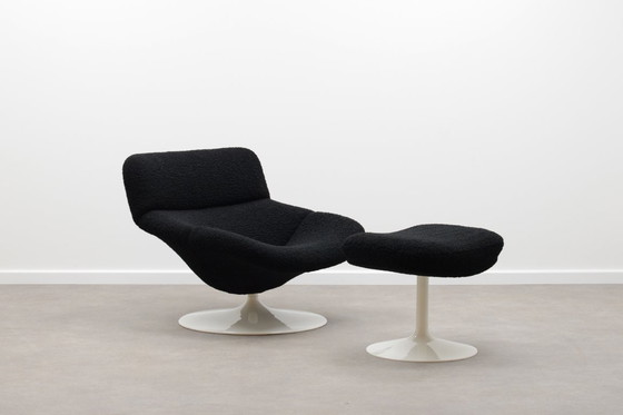 Sessel und Hocker F518 von Geoffrey Harcourt für Artifort, 1970er Jahre. Großer, bequemer Lounge-Sessel. Neu bezogen mit schwarzem Teddyfell.