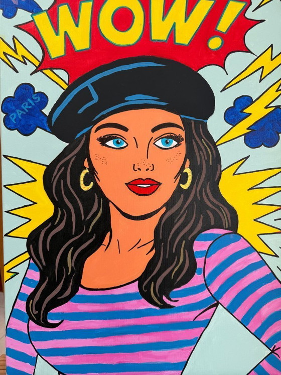 Dies ist ein Acrylgemälde auf Leinwand, signiert von der Künstlerin Aurora Konigsberg, 70 x 50 cm groß, bereits auf einen Keilrahmen gespannt und fertig zum Aufhängen. – Echtheitszertifikat der Galerie AXXESS FINART CONSEILS – Einzigartig – Eine Investition in Kunst! – Aurora Konigsberg ist eine 1971 geborene polnische Künstlerin, die an der Akademie der Bildenden Künste in Lodz studierte. – Ihr Pop-Art-Stil ist vom berühmten amerikanischen Künstler Roy Lichtenstein inspiriert, und ihre Farbpalette ist faszinierend. – Versand aus Frankreich per Colissimo mit Empfangsbestätigung. – Rechnung wird mitgeliefert.