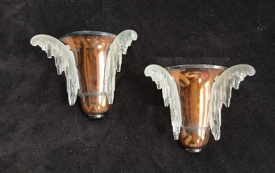 AUSSERGEWÖHNLICHES PAAR ART-DÉCO-WANDLAMPEN VON EZAN France & KUPFERBESCHICHTETES Metall