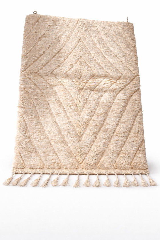 Dieser wunderschöne, authentische Berberteppich wird von Kunsthandwerkern aus dem marokkanischen Atlasgebirge handgeknüpft. Er besteht aus 100 % Naturwolle und besticht durch seine außergewöhnlich weiche Textur, Wärme und Langlebigkeit.