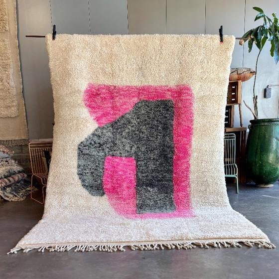 Bringen Sie Wärme und Charakter in Ihren Raum mit diesem authentischen marokkanischen Mrirt-Teppich aus Berberwolle. Dieser luxuriöse, hochflorige Teppich wird von erfahrenen Handwerkern handgewebt und zeigt ein atemberaubendes geometrisches Stammesmuster in leuchtenden Farben auf einem weichen, cremefarbenen Hintergrund. Dieser marokkanische Teppich aus 100 % hochwertiger Wolle ist unglaublich weich und strapazierfähig und passt perfekt zu jeder böhmischen, modernen oder eklektischen Wohnungseinrichtung.