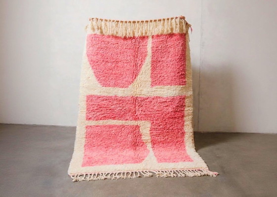 Tauchen Sie ein in die reiche Tradition marokkanischer Handwerkskunst mit diesem authentischen Berberteppich aus Wolle. Mit seinen Maßen von 200 x 150 cm besticht dieses exquisite Stück durch eine faszinierende Mischung aus Rosa- und Cremetönen und schafft so eine warme und einladende Atmosphäre in jedem Raum.