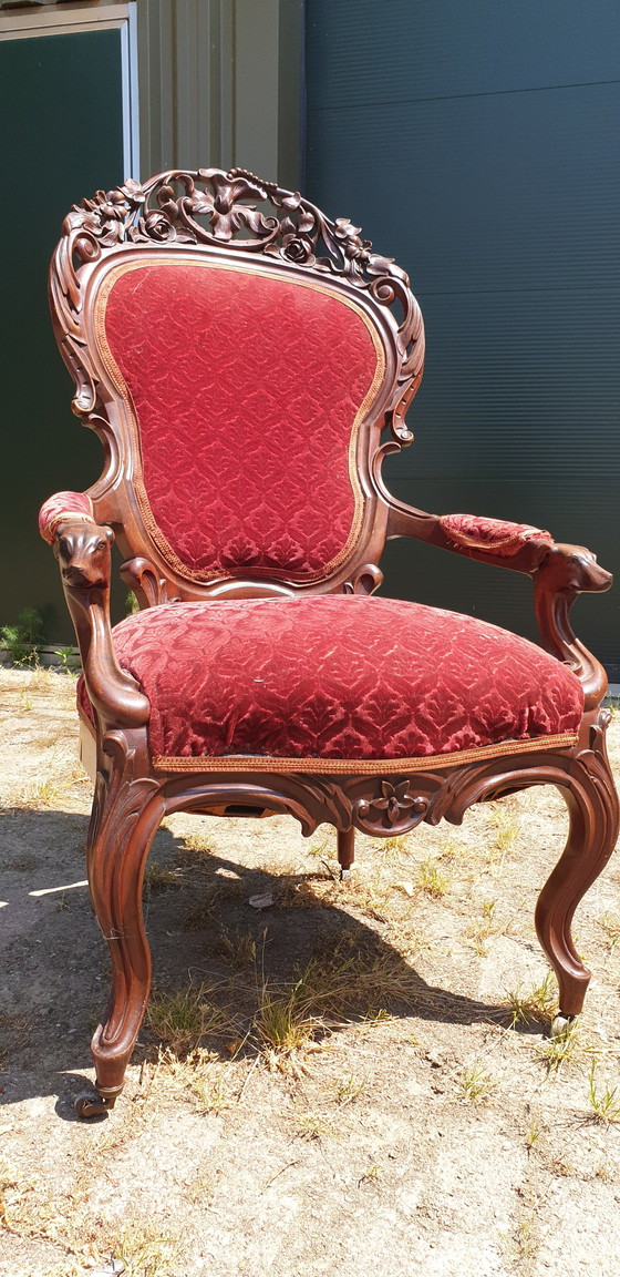 Erleben Sie die zeitlose Eleganz dieses barocken Horrix-Sessels – ein Meisterwerk der Handwerkskunst, das Ihr Interieur aufwertet. Der satte rote Samtbezug und die edlen Holzdetails verströmen einen klassischen Charme, der perfekt zu einem stilvollen und eleganten Ambiente passt.