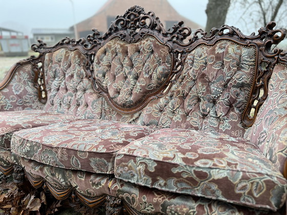 Dieses exquisite Barocksofa ist ein Zeugnis zeitloser Eleganz und meisterhafter Handwerkskunst. Sein kunstvoll geschnitztes Holzgestell und der luxuriöse Bezug laden dazu ein, ein Stück Geschichte in Ihrem Wohnraum zu erleben. Die kunstvollen Details und die weiche Polsterung machen es zum perfekten Mittelpunkt für jedes klassische Interieur.
