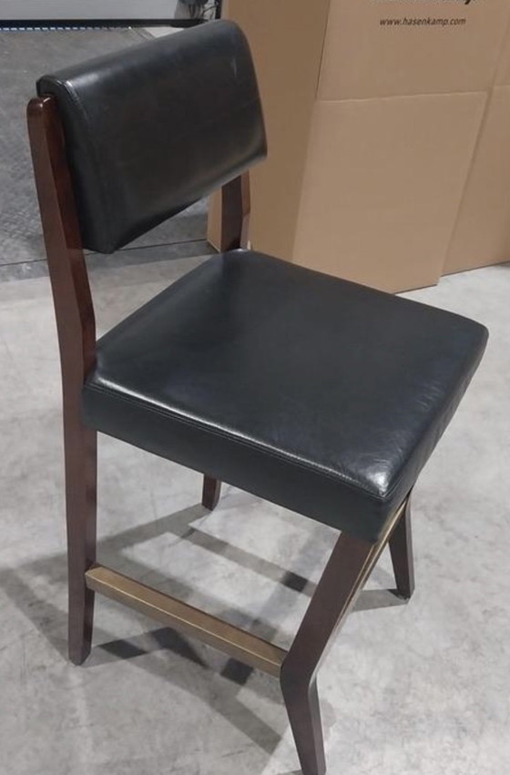 Barstuhl mit gepolsterter Sitzfläche und Rückenlehne.