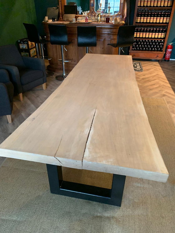 Dieser robuste Tisch aus einem Baumstamm verleiht jedem Esszimmer einen natürlichen Charme. Die massive Holzplatte ruht sicher auf einem Metallgestell und sorgt so für Stabilität und Langlebigkeit. Perfekt für gemütliche Abendessen und Familienfeiern. Dank des naturbelassenen Holzes können Sie den Tisch ganz nach Ihren Wünschen gestalten.