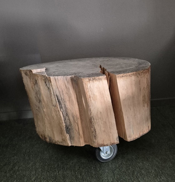 Bringen Sie mit diesem einzigartigen Baumstammtisch ein Stück Natur in Ihr Zuhause! Er ist perfekt für einen rustikalen Touch in Ihrem Wohnzimmer oder Garten. Der Tisch ist aus Massivholz gefertigt und steht auf stabilen Metall-/Gummirollen, sodass er sich leicht bewegen lässt. Die natürlichen Risse und die Maserung verleihen ihm einen authentischen Charakter, der jeden Raum belebt. Ideal als Beistelltisch oder Dekorationsobjekt. Nutzen Sie diese Gelegenheit und bereichern Sie Ihr Interieur mit einem Hauch Natur!