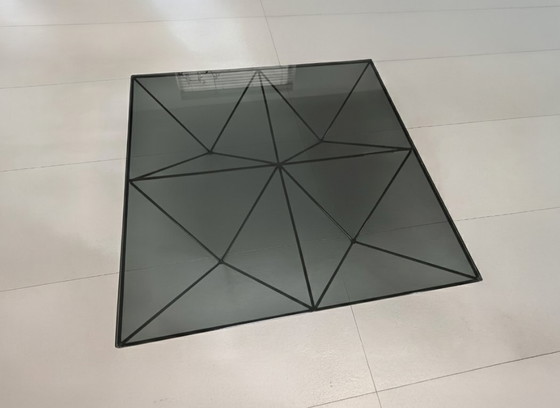 Ein ikonischer italienischer Couchtisch: der „Alanda '18“, entworfen von Paolo Piva für B&B Italia. Diese 120 x 120 cm große Ausführung besticht durch ein geometrisches, schwarzes Metallgestell und eine Tischplatte aus Rauchglas mit abgeschrägter Kante. Die klaren Linien des Gestells verleihen dem Tisch eine skulpturale, zugleich luftige und architektonische Anmutung.