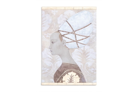 Bemaltes Leinwandbild bzw. dekoratives Paneel, das eine italienische Adlige im Renaissancestil darstellt.