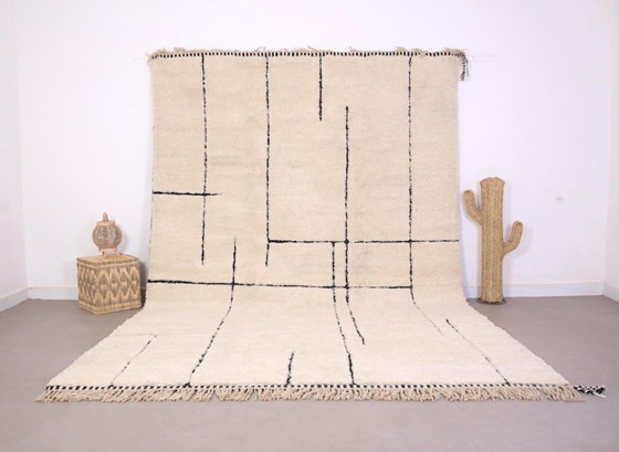 Entdecken Sie die zeitlose Eleganz des Beni Ouarain-Teppichs – ein Herzstück, das Ihr Zuhause verwandeln wird. Dieser authentische Wollteppich (300 x 200 cm) ist ein perfektes Beispiel traditioneller Berber-Handwerkskunst. Seine weiche, luxuriöse Textur lädt zum Entspannen ein, während sein klares Design sich harmonisch in jede Einrichtung einfügt.