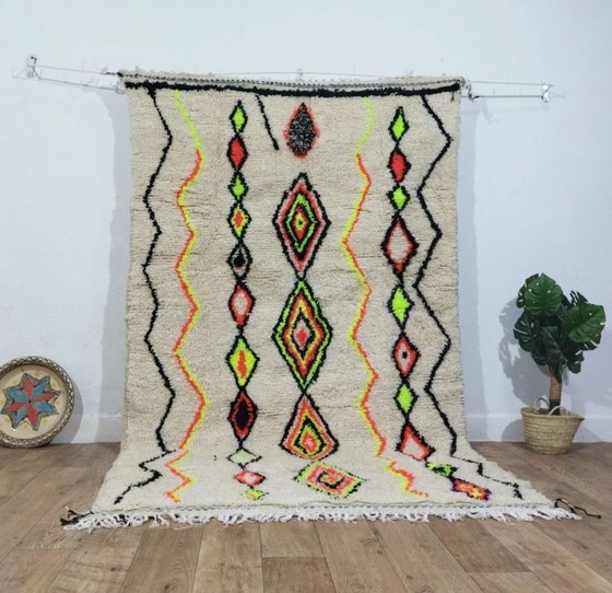 Tauchen Sie mit diesem exquisiten Berber-Azilal-Wollteppich in die lebendige Kultur Marokkos ein. Sorgfältig handgewebt, besticht dieser Teppich durch eine faszinierende Vielfalt geometrischer Muster und leuchtender Farben, die von Tradition und Kunstfertigkeit erzählen. Er verleiht jedem Raum einen Hauch von Bohème-Flair und ist sowohl ein optischer Genuss als auch ein Zeugnis meisterhafter Handwerkskunst.