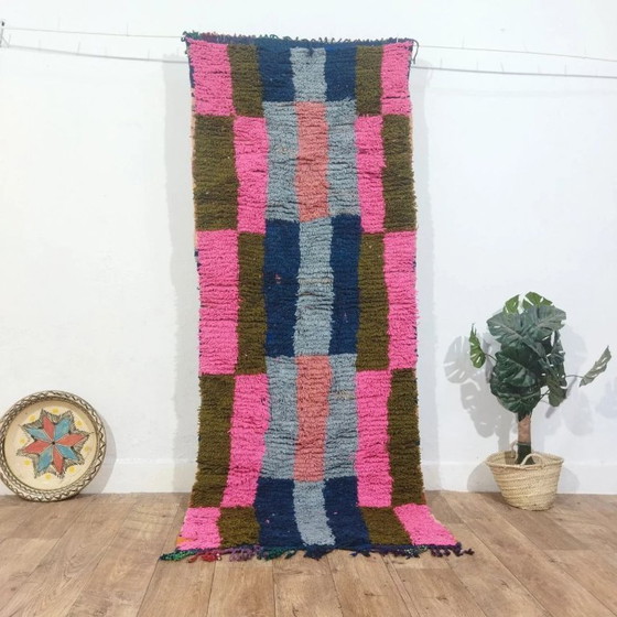 Erleben Sie die lebendige Anziehungskraft marokkanischer Handwerkskunst mit diesem exquisiten Berber-Läufer aus Wolle. Handgefertigt aus 100 % Wolle, bringt dieses Stück authentische nordafrikanische Kunstfertigkeit in Ihr Zuhause. Seine markanten geometrischen Muster und satten Farben machen ihn zu einem Blickfang in jedem Flur oder Wohnbereich.