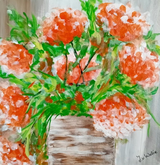Gemälde Blumen in Vase (4). Acrylfarbe auf Leinwand, fertig zum Aufhängen, Seitenkanten bemalt. Siehe auch meine anderen Blumenbilder. Könnte nett sein, zu kombinieren.