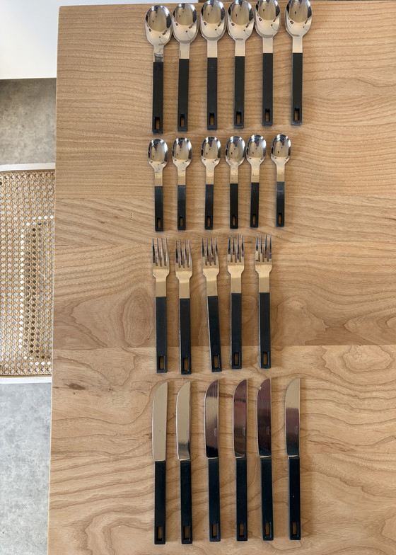 Erleben Sie die perfekte Balance zwischen Stil und Funktionalität mit diesem Boda Buffet-Besteckset. Entworfen für den modernen Tisch, bietet dieses Set eine elegante Optik, die sich sowohl für den täglichen Gebrauch als auch für besondere Anlässe eignet. Die schlanken grauen Griffe verleihen dem Set eine zeitgemäße Note, während das glänzende Metall Ihrer Tischdekoration einen edlen Glanz verleiht. Dieses Set ist ideal für alle, die Wert auf Langlebigkeit und ansprechendes Design legen. Leider fehlt eine Gabel. Siehe Foto.