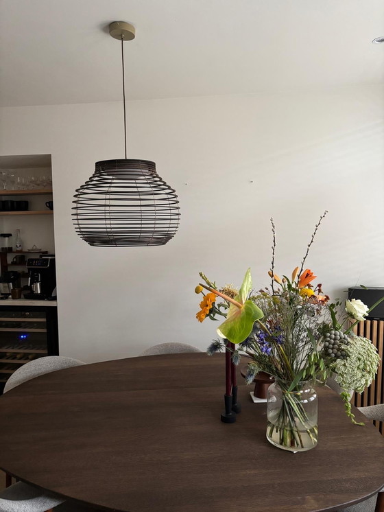 Wunderschöne Bolia Anelli Pendelleuchte mit 55 cm Durchmesser. Gefertigt aus dunkel geölter Eiche.