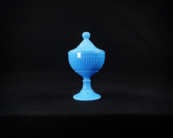 Opalin ist ein Material, das aus durchgefärbtem Glas besteht, hier ist es blau, was bei den Opalinen von Portieux Vallerysthal eher selten ist, wo die Farben Weiß und Rosa viel beliebter sind.