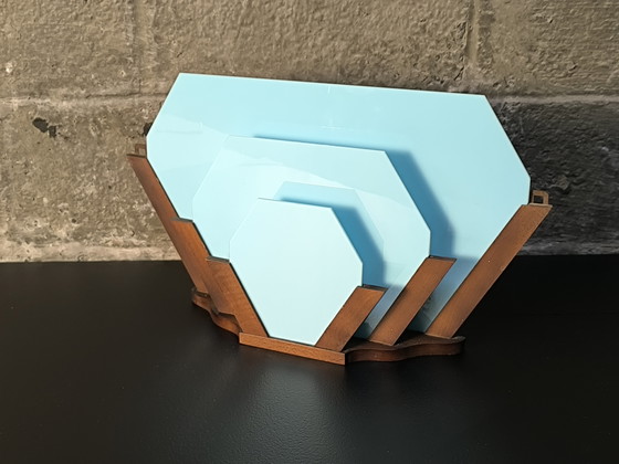 Briefständer aus der Mitte des 20. Jahrhunderts. Holz und Kunstglas.