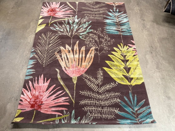 Dieser Harlequin Yasuni Cerise 40405 Teppich ist dank seines einzigartigen Musters ein echter Hingucker. Die Hauptfarbe ist Braun. Darüber ziert ein florales Blattmuster die Wände, ergänzt durch leuchtende Farben wie Gelb und Rosa. Dadurch passt der Teppich hervorragend zu einem lebhaften Interieur, aber auch zu einem dezenteren Stil und sorgt für ein harmonisches Gesamtbild.