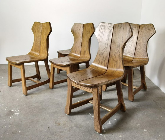 Diese markanten Esszimmerstühle aus Eiche im Brutalismus-Stil vereinen schlichtes und funktionales Design. Gefertigt aus natürlicher Eiche, bieten sie Langlebigkeit und ästhetische Reize. Sie fügen sich perfekt in moderne wie auch rustikale Einrichtungsstile ein. Mit ihrem minimalistischen Design verleihen sie jedem Raum eine elegante Note und sind dank ihrer bequemen Sitzfläche ideal für gesellige Abende mit Gästen. Sie lassen sich flexibel an Ihre Bedürfnisse anpassen und schaffen in Kombination mit verschiedenen Farbpaletten eine einzigartige Atmosphäre. Nutzen Sie die Gelegenheit und bereichern Sie Ihr Interieur mit diesen Stühlen von hochwertiger Verarbeitung und zeitloser Schönheit!